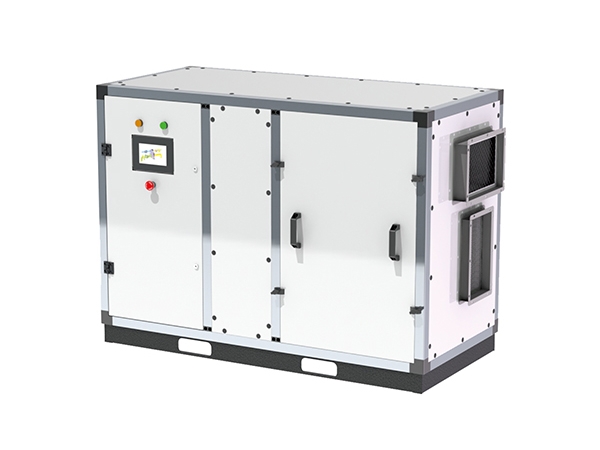 在再生過程中,再生空氣經(jīng)過加熱后(120℃左右),進(jìn)入轉(zhuǎn)輪再生區(qū)扇面,在高溫狀態(tài)下,轉(zhuǎn)輪中的水分子被脫附,散失到再生 空氣中。再生空氣由于在脫附過程中損失了熱量,自身溫度降低,變成了含濕量很大的濕空氣 ,由再生風(fēng)機(jī)排至室外。除濕和再生同時(shí)進(jìn)行,待處理空氣不斷除濕,轉(zhuǎn)輪不斷再生,對(duì)空氣進(jìn)行連續(xù)除濕。